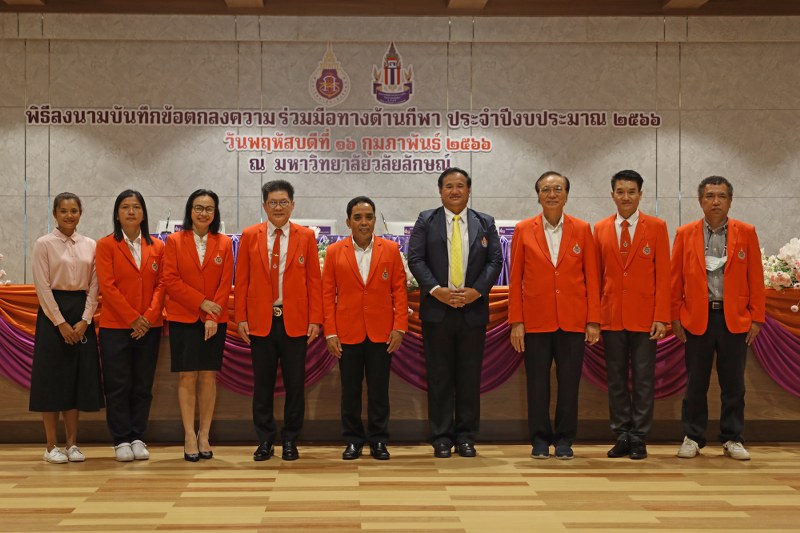 เมื่อวันที่ 16 กุมภาพันธ์ 2566 ศาสตราจารย์ ดร.สมบัติ ธำรงธัญวงศ์ รักษาการแทนอธิการบดีมหาวิทยาลัยวลัยลักษณ์ และนายไทยทนุ วรรณสุข เลขาธิการสมาคมกีฬาลอนเทนนิสแห่งประเทศไทย ในพระบรมราชูปถัมภ์ ลงนามในบันทึกข้อตกลงความร่วมมือทางด้านกีฬา ประจำปีงบประมาณ 2566 ระหว่างมหาวิทยาลัยวลัยลักษณ์ กับ สมาคมกีฬาลอนเทนนิสฯ โดยมี รองศาสตราจารย์ ดร.วรวุฒิ สมศักดิ์ รักษาการแทนรองอธิการบดีและ ผู้ช่วยศาสตราจารย์ ดร. มาริสา ภูมิภาค ณ หนองคาย รักษาการแทนผู้อำนวยการศูนย์ส่งเสริมวัฒนธรรมและการกีฬา ลงนามเป็นพยาน ท่ามกลางผู้บริหารและบุคลากรของทั้งสองฝ่ายร่วมเป็นสักขีพยาน ณ ห้องประชุมหัวตะพาน อาคารอำนวยการโรงพยาบาลศูนย์การแพทย์มหาวิทยาลัยวลัยลักษณ์