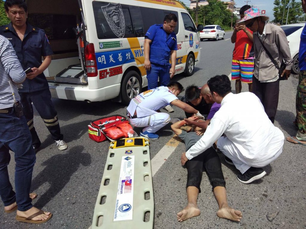 ลุงกับป้าขี่จจย.ไปหาหมอระหว่างทางจะกลับเลี้ยวรถกะทันหันตัดหน้ารถเก๋งเสยกระเด็นทั้งคู่