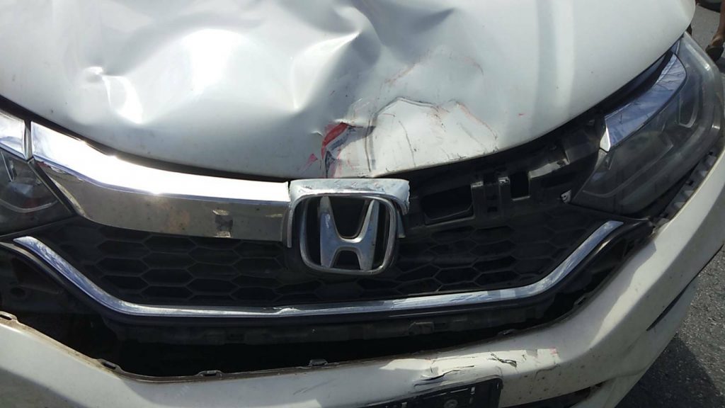 ในจุดที่เกิดเหตุพบรถผู้ได้รับบาดเจ็บ 2 ราย ทราบชื่อ นางหลอด ขาวผ่อง อายุ 73 ปี นอนอยู่บนถนนมีบาดแผลตามลำตัวถลอกที่ศรีษะเลือดออกจำนวนมากอาการค่อนข้างสาหัสเจ้าหน้าที่กู้ภัยเร่งปฐมพยาบาลเบื้องต้นก่อนนำส่งโรงพยาบาล ส่วนอีกรายทราบชื่อนายเฉลิม ขาวผ่อง ได้รับบาดเจ็บเล็กน้อยบริเวณแขน ขา ถลอกฟกช้ำ ห่างกันพบรถจักรยานยนต์ยี่ห้อฮอนด้าเวฟ สีแดง หมายเลขทะเบียน กตจ253 นครนายก สภาพด้านท้ายรถพังเสียหายแผ่นป้ายหลุด บังโคนแตก ถัดมาพบรถเก๋งยี่ห้อฮอนด้าซิตี้สีขาวหมายเลขทะเบียน 7กฒ 1140 กรุงเทพมหานคร สภาพรถด้านหน้ายุบกระจกแตก และมีเส้นผมติดคากระจกหลายเส้น โดยมีนายพิชัย มูลผล อายุ 37 ปีเป็นคนขับพร้อมเพื่อนที่นั่งมาด้วยกัน 4 คน