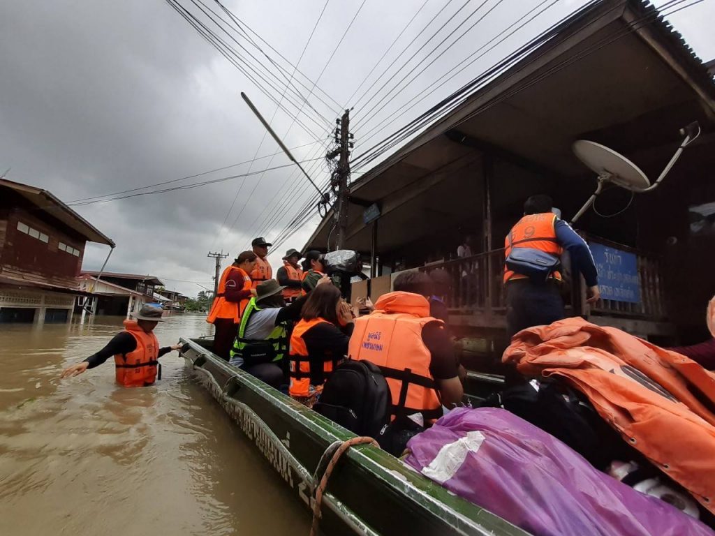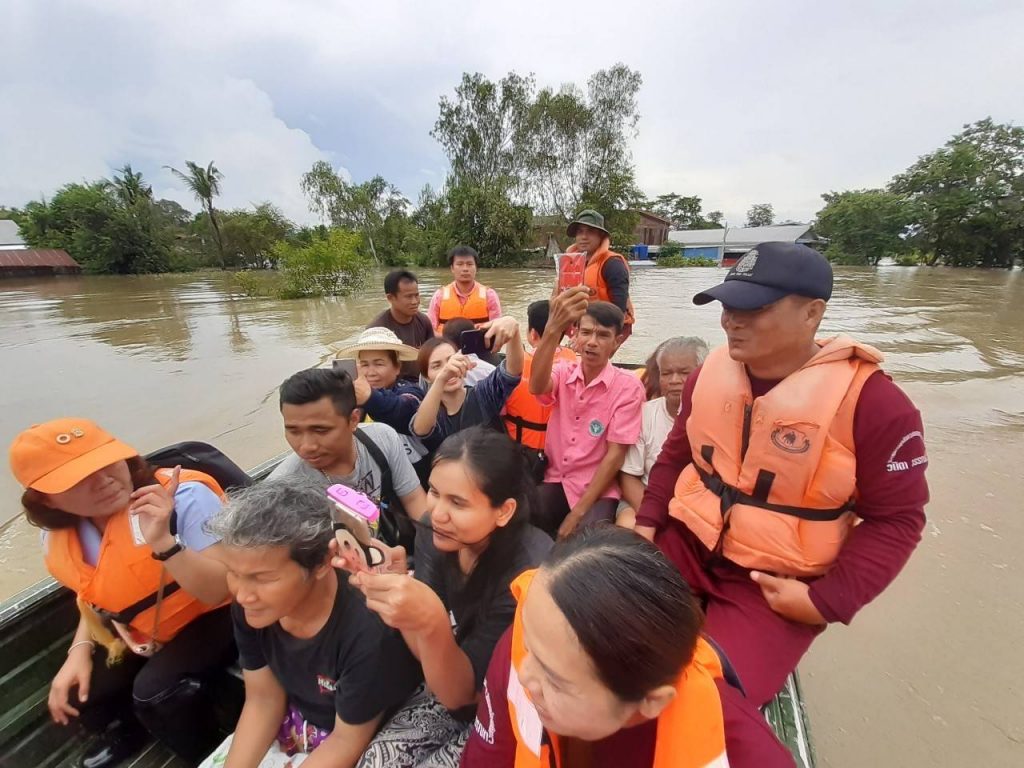 - นำเรือท้องแบนออกแจกจ่ายน้ำดื่มและอำนวยความสะดวก คณะทีมข่าว ช่อง one31 ที่เดินทางมามอบสิ่งของให้แก่ประชาชนผู้ประสบอุทกภัยในพื้นที่ ต.ไรใต้ อ.พิบูลมังสาหาร จ.อุบลราชธานี