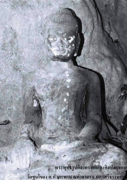 - พระพุทธรูป แกะสลักจากหินทรายแดง ขนาดหน้าตักประมาณ ๔๐ นิ้ว ( ประมาณ ๑ เมตรเศษ ) เป็นพระพุทธรูปศิลปะอยุธยา สกุลช่างพื้นเมือง ปัจจุบันประดิษฐานอยู่ที่วัดขุนโขลง ซึ่งดูแลดย พระอาจารย์มณฑล เจ้าอาวาสวัดขุนโขลง