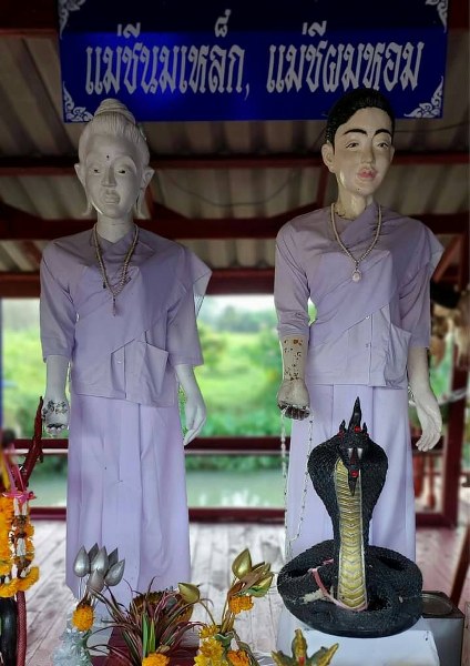 ในส่วนนี้นายผิน ยังสันนิษฐานได้ไม่แน่ชัด อาจเป็นไปได้ที่เป็นทางเข้าวัดเดิม หรือ เป็นสระน้ำประจำวัด #ความเป็นมาของแม่ชีนมเหล็ก – แม่ชีผมหอม ประวัติของแม่ชีนมเหล็ก และ แม่ชีผมหอม ในฉบับมุขปาฐะของชาวบ้านขุนโขลงและบริเวณโดยรอบ ได้เล่าแตกต่างจากเรื่องราวของแม่ชีนมเหล็กสำนวนตำนานพระพวย โดยเรื่องราวได้เกิดขึ้นสมัยที่พ่อท่านทิดยังคงมีชีวิตอยู่ พื้นที่บ้านหัวพ่านในยุคนั้น ได้มีการเปลี่ยนชื่อเป็นบ้านหัวตะพาน มีขุนหัวตะพานเป็นกำนันประจำตำบล ขุนหัวตะพานมีบุตรสาว ๒ คน คือแม่ชีนมเหล็ก และ แม่ชีผมหอม ตอนที่บุตรสาวของขุนหัวตะพานยังเด็ก มักจะเจ็บไข้ได้ป่วยอยู่เสมอ ขุนหัวตะพานจึงพาบุตรสาวไปถวายเป็นบุตรบุญธรรมของพ่อท่านทิด และได้บนบานสานกล่าวว่า หากบุตรสาวทั้งสองหายจากอาการเจ็บไข้ได้ป่วยแล้ว เมื่อบุตรสาวทั้งสองเจริญวัยจะให้บวชชีเป็นลูกศิษย์พ่อท่านทิด เมื่อบุตรสาวของขุนหัวตะพานเจริญวัย ปรากฏว่าตัวกำนันและบุตรสาวได้ลืมในสิ่งที่บนบานไว้ ทำให้เจ็บไข้ได้ป่วยอีกครั้ง เมื่อกำนันนึกถึงเรื่องที่บนบานได้ จึงนำบุตรสาวไปหาพ่อท่านทิดเพื่อบวชชีแก้บน พ่อท่านทิดจึงให้แม่ชีนมเหล็กพี่สาวบวชเป็นชีพราหมณ์ (บวชชีถือศีล ๘ แต่ไว้ผมได้), ส่วนแม่ชีผมหอม ได้ขออนุญาต บิดาบวชเป็นชีพราหมณ์อีกคน เพื่อป้องกันคำครหาของชาวบ้าน, พ่อท่านทิด จึงบวชให้บุตรบุญธรรมทั้งสอง โดยแม่ชีสองพี่น้อง มีกุฎิอยู่ที่ริมสระน้ำทางตะวันตกของวัด แม่ชีนมเหล็ก แม่ชีผมหอม ได้ประพฤติตนอยู่ในศีลอุโบสถ ( ศีล ๘ ) อย่างแรงกล้า กระทั่งพ่อท่านทิดใกล้มรณภาพ พ่อท่านทิดจึงสั่งเสียแก่แม่ชีนมเหล็ก และ แม่ชีผมหอม หลังจากท่านมรณภาพแล้ว ให้ช่วยอยู่รักษาวัด คอยดูแลวัด อย่าได้ละทิ้งวัดแม่ชีทั้งสองรับปาก เมื่อเสร็จจากการปลงศพและบรรจุอัฐิพ่อท่านทิดเข้าบัวแล้ว แม่ชีนมเหล็ก แม่ชีผมหอม อยู่อาศัยรักษาวัด จนกระทั่งแม่ชีนมเหล็กถึงแก่กรรม เมื่อฌาปน กิจเสร็จแล้ว พบว่าชิ้นเนื้อส่วนทรวงอกทั้งสองด้านกลับไม่ไหม้ไฟ ชาวบ้านจึงเรียกแม่ชีผู้พี่ว่า “ แม่ชีนมเหล็ก ” ภายหลังเมื่อวัดซบเซาลง แม่ชีผมหอมและชาวบ้านจึงเอาชิ้นส่วนที่ทรวงอกที่แข็งเป็นหินนำไปฝังซ่อนไว้ภายในบริเวณวัด ผ่านไปหลายปี แม่ชีผมหอม หรือ แม่ชีผู้น้องที่ดูแลวัดได้ถึงแก่กรรมลง ชาวบ้านได้ช่วยกันฌาปนกิจ ปรากฏว่าผมบนหัวแม่ชีผู้น้องทั้งหมด กลับไม่ไหม้ไฟ ซ้ำยังมีกลิ่นหอมเหมือนดอกพิกุล ชาวบ้านจึงเรียกแม่ชีผู้น้องว่า “ แม่ชีผมหอม ” และได้รักษาผมที่ไม่ไหม้ไฟทั้งหมดให้อยู่คู่กับวัด แต่ภาย