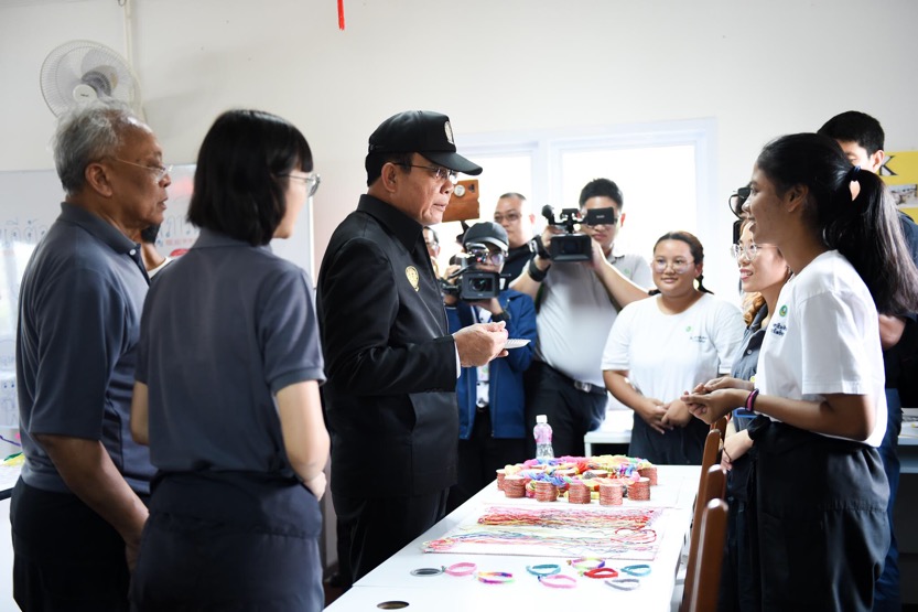 โอกาสนี้ นายกรัฐมนตรีชมการเรียนการสอนภาษาจีน ณ ห้องเรียนภาษาจีน โดยกล่าวทักทายเด็กนักเรียนเป็นภาษาจีนว่า “หนีห่าว” และชมการวาดภาพดอกเหมย ศิลปะการตัดกระดาษรูปภาพต่าง ๆ รวมทั้งศิลปะการเขียนพู่กันจีน และเขียนชื่อ “ประยุทธ์” เป็นภาษาจีนลงในกระดาษสีแดง และเยี่ยมชมห้องเรียนภาษาอังกฤษและห้องเรียนคอมพิวเตอร์ จากนั้นแวะชมโรงอาหารของวิทยาลัยอาชีวศึกษาฯ ร่วมสาธิตการทำอาหารใบเหลียงผัดไข่ เกี๊ยวหมูหมาล่า ข้าวเหนียวน้ำตาลหวานร่วมกับพ่อครัวคนไทยและพ่อครัวต่างประเทศ และนั่งรถรางเยี่ยมชมแปลงเกษตร ฟาร์มไก่ บริเวณรอบวิทยาลัยฯ ก่อนเดินทางไปยังหอประชุมใหญ่วิทยาลัยอาชีวศึกษาฯ เพื่อพบประชาชนและนักศึกษา
