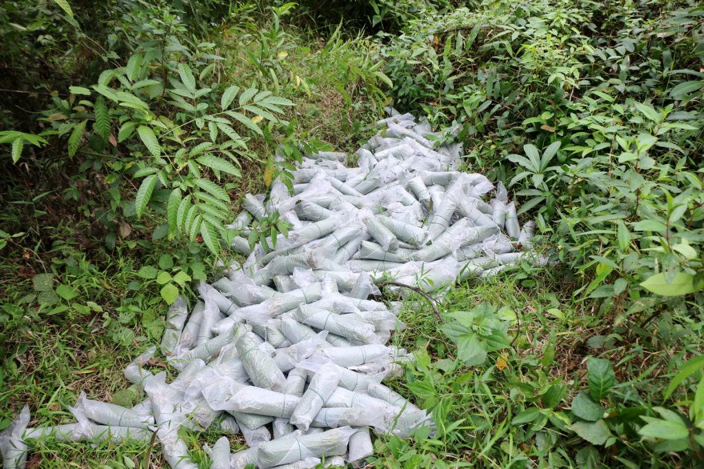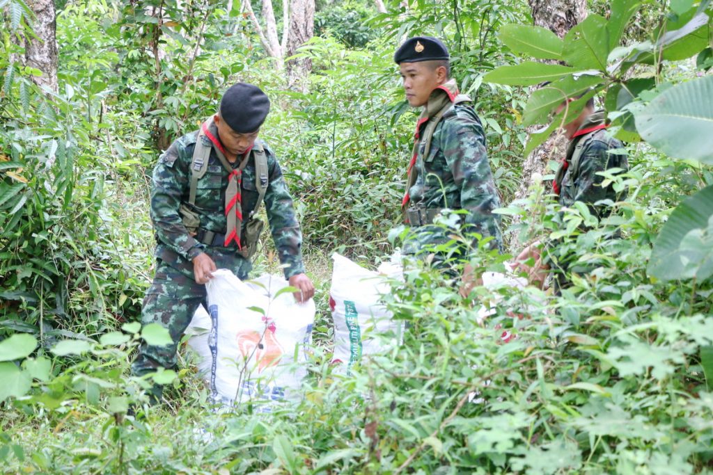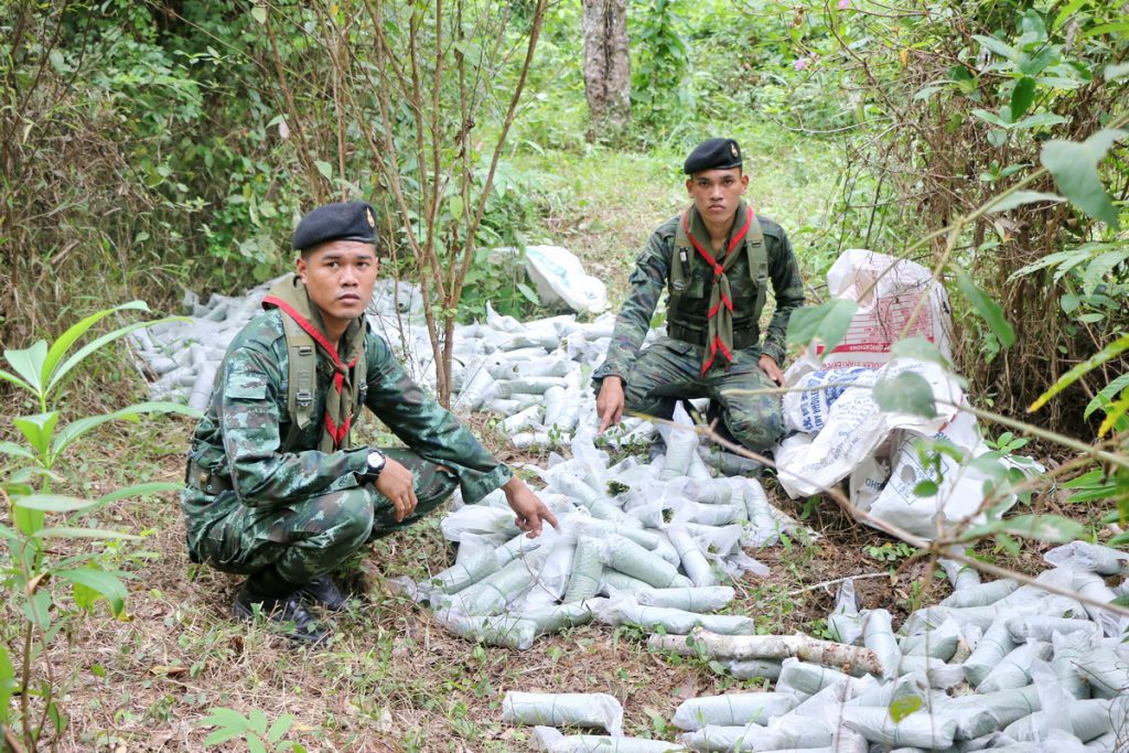 และห่างจากโกดังประมาณ 60 เมตร เจ้าหน้าที่ซึ่งกระจายกำลังออกตรวจสอบ พบกองใบกระท่อมสดลักษณะเดียวกัน วางเป็นกองๆ ในป่าละเมาะระหว่างแถวต้นยางพารา จำนวน 3 กอง จึงได้เก็บรวบรวมใส่กระสอบ และขนไปรวบรวมไว้ที่ ค่ายทหารร้อย ร.5021 ซึ่งใบกระท่อมสดทั้งหมดมีน้ำหนักรวม 687 กิโลกรัม