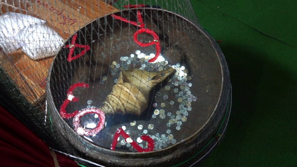 เมื่อเวลา 22.00 น. วันที่ 15 กันยายน 2562 ที่อาศรมฤๅษีเณร ถนนวงแหวนตะวันตกหมายเลข 9 บางปะอิน-ปทุมธานี มีประชาชนจำนวนมากเดินทางมาร่วมพิธีพิธีสวดนพเคราะห์เสริมบารมี ในคืนก่อนวันหวยออก โดยเฉพาะบรรดานักเสี่ยงโชคทั้งหลายแห่มาร่วมพิธีพร้อมส่องอ่างน้ำมนต์ที่ผิวน้ำจะมีตัวเลขจากน้ำตาเทียนสีแดง สามารถมองเห็นได้อย่างชัดเจนปรากฎเป็นตัวเลข 2,9,1,4,3,0