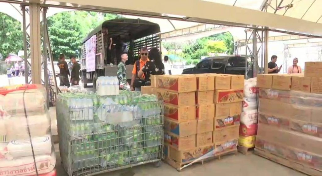 วัดพระบาทน้ำพุ จังหวัดลพบุรี เร่งจัดข้าวสารอาหารแห้ง น้ำดื่ม ขนม อุปกรณ์ยังชีพ บรรจุใส่ถุงยังชีพไปช่วยเหลือประชาชนที่ถูกน้ำท่วมในพื้นที่ภาคตะวันออกเฉียงเหนือเพื่อบรรเทาความเดือดร้อน ขณะที่เกษตรกรทำนาจังหวัดเร่งเกี่ยวข้าวหนีน้ำ หลังมีประกาศเตือนพายุลูกใหม่