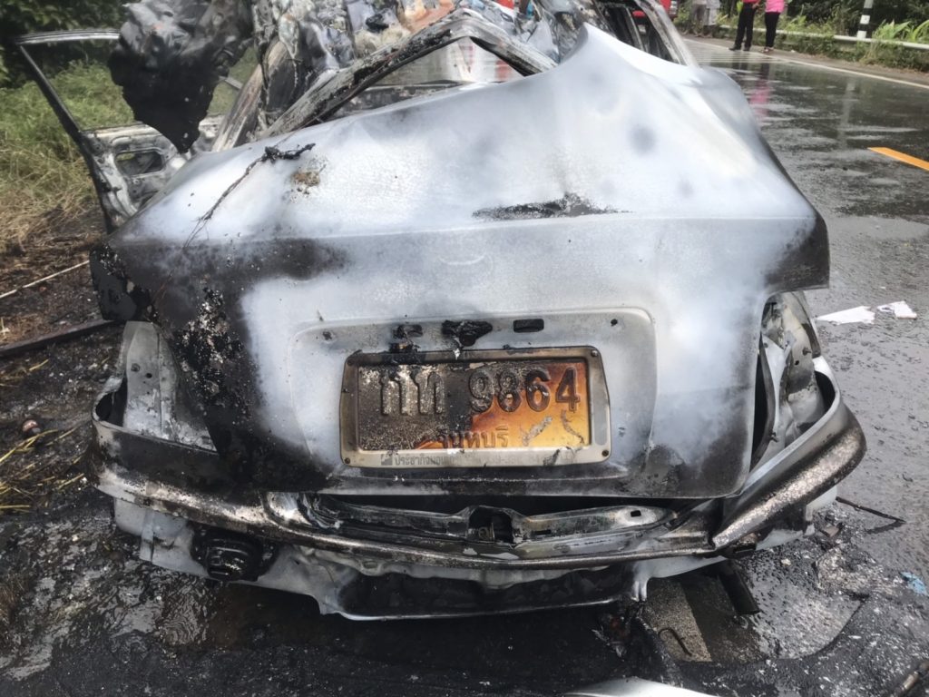 เมื่อเวลา 9.30 น. พันตำรวจโทสมาน ชัยชาญ รองสว.ป สภ.คิชฌกูฎ ได้รับแจ้งจากพลเมืองดีว่า มีไฟไหม้รถเก๋ง ที่บริเวณเลยทางแยกวัดพลวง อ.เขาคิชฌกูฎ ไปเล็กน้อย หลังรับแจ้งจึงประสานไปยังเทศบาลตำบลพลวง เพื่อขอรถดับเพลิงสนับสนุนที่เกิดเหตุ เมื่อไปถึงที่เกิดเหตุพบรถเก๋ง โตโยต้า สีบรอน หมายเลขทะเบียนกท 9864 จันทบุรี ถูกไฟไหม้ทั้งคัน เจ้าหน้ากู้ภัยสว่างกตัญญูจันทบุรี ได้ปิดการจราจรชั่วคราว หลังจากนั้นเจ้าหน้าที่ดับเพลิงได้ระดมฉีดน้ำขณะไฟกำลังลุกท่วม เพื่อทำการสกัดไฟ โดยใช้เวลา กว่า 20 นาที เพลิงจึงสงบ