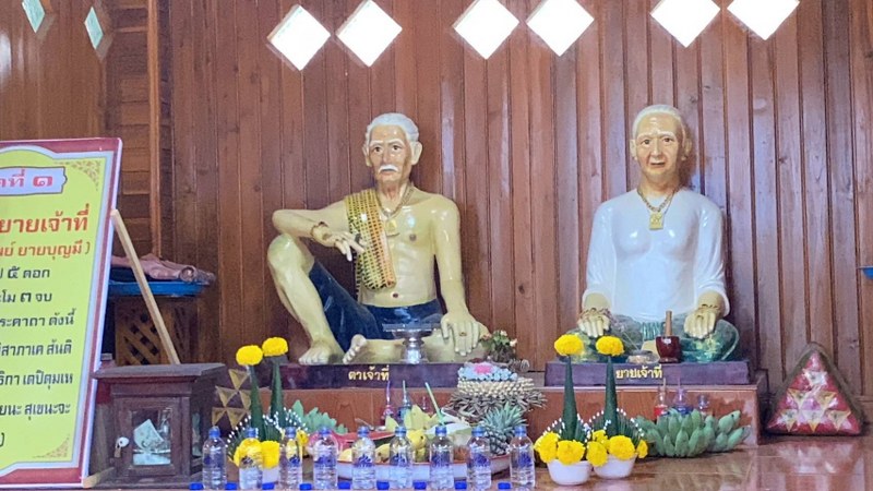 ที่วัดเตว็ดใน (ป่าปลา) ม.4 ต.วังใหญ่ อ.ศรีสำโรง จ.สุโขทัย คณะศรัทธาชาวบ้านเตว็ดใน พร้อมด้วย คุณแม่ ธัญญ์รวี โสมนรินทร์ (แม่กระปุก ออมสิน) จัดพิธีขอพร เปิดโชคเปิดลาภ เนื่องในวันสงกรานต์หรือ ปีใหม่ไทย ตาบุญทรัพย์ ยายบุญมี ตายายเจ้าที่และสิ่งศักดิ์สิทธิ์ภายในวัดเตว็ดใน โดยได้มีนางรำ รำถวายตายาเจ้าที่ พร้อมทั้งจุดธูปตัวเลข เพื่อนำไปเสี่ยงโชคอีกด้วย สำหรับเลขธูปที่จุดนั้นคือเลข 7 9 6