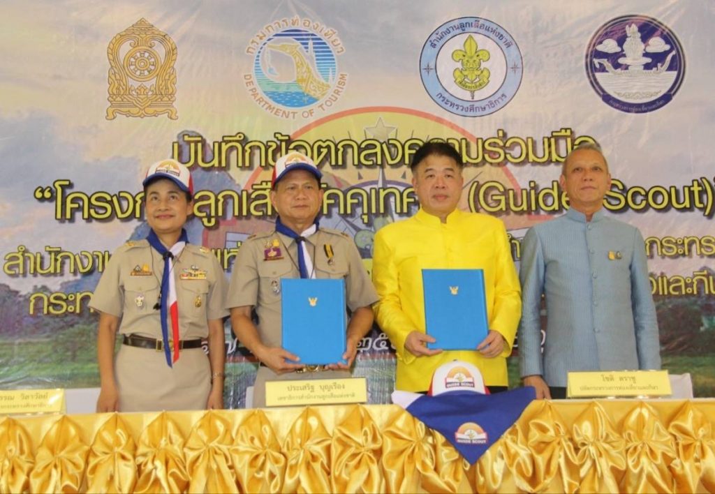 วันนี้ วันอังคารที่ 17 กันยายน 2562 เวลา 15.30 น. ณ หอประชุมวชิราวุธวิทยาลัย กรุงเทพมหานคร : “สำนักงานลูกเสือแห่งชาติ กระทรวงศึกษาธิการ” จับมือ “กระทรวงการท่องเที่ยวและกีฬา” ลงนาม MOU เพื่อร่วมมือตั้งกองลูกเสือมัคคุเทศก์ โดยมุ่งหวังให้ลูกเสือมีบทบาทในการเป็นมัคคุเทศก์ เพื่อส่งเสริมการท่องเที่ยว อีกทั้ง ยังเป็นการปลูกฝังให้ลูกเสือเกิดความรัก ความภาคภูมิใจในคุณค่าของท้องถิ่นของตน มีความรู้ ความเข้าใจ และเห็นความสำคัญของการท่องเที่ยว มั่นใจ เยาวชนที่จะมาร่วมโครงการมัคคุเทศก์ในครั้งนี้ สามารถเป็นผู้นำ และเป็นแรงขับเคลื่อนประเทศไทยให้เจริญก้าวหน้าต่อไปได้ในอนาคต