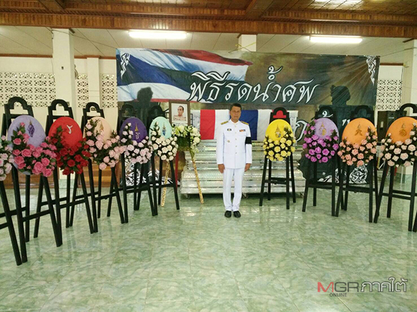 สมเด็จพระเจ้าอยู่หัว โปรดเกล้าฯ ให้รองผู้ว่าราชการจังหวัดปัตตานี อัญเชิญพวงมาลาหลวงวางหน้าหีบศพ “อส.พงศักดิ์ ยอดใจ” เสียชีวิตจากเหตุความไม่สงบในจังหวัดชายแดนภาคใต้