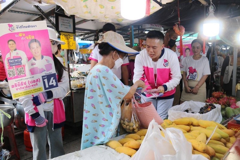 วันที่ 12 พฤษภาคม 2566 : นาย อริย์ธัช ชาติอาริยะพงศ์ “บอส” ผู้สมัคร ส.ส. กรุงเทพมหา นคร เขต 21 พรรคชาติไทยพัฒนา เบอร์ 14 พื้นที่เขตรับผิดชอบ เขตประเวศ และเขตสะพานสูง แขวงประเวศ แขวงดอกไม้ และแขวงทับช้าง นำทีมงานลงพื้นที่เดินเท้า ตลาดนัดหมู่บ้านนักกีฬาแหลมทอง อ้อนขอคะแนนเสียงจากพ่อค้า แม่ค้า และพี่น้องประชาชน ชาวเขตประเวศและเขตสะพานสูง