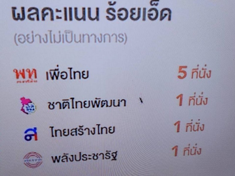 ร้อยเอ็ด – ผลการนับคะแนนเบื้องต้น อย่างไม่เป็นทางการ ล่าสุดเพื่อไทยร่วงไปแล้ว 3 เขตพรรคเพื่อไทยจังหวัดร้อยเอ็ด ตก 3 เขตประกอบไปด้วย เขต 1 เขต 3 และเขต 7