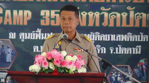 วันนี้ 19 กันยายน 2562 ที่ศูนย์ฟื้นฟูสมรรถภาพผู้ติดยาเสพติด ตำบลบ่อทอง อำเภอหนองจิก จังหวัดปัตตานี นายสมนึก พรหมเขียว รองผู้ว่าราชการจังหวัดปัตตานี เป็นประธานเปิดค่ายพักพิงเพื่อการบำบัด (Camp 35) จังหวัดปัตตานี รุ่นที่ 4 ตามที่แม่ทัพภาคที่ 4 ประกาศแผนปฏิบัติการรวมพลังแก้ไขปัญหายาเสพติด คืนความสุขจังหวัดชายแดนภาคใต้ และกำหนดแนวทางบำบัดรักษาและแก้ไขปัญหายาเสพติด