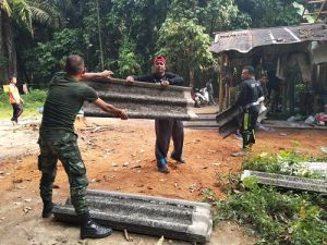 นาย อาหะมะ สาตอปา อายุ 48 ปี บ้านเลขที่ 126/3 ม.8 บ.ลูโบ๊ะซามา ต.ปาเสมัส อ.สุไหงโก-ลก จ.นราธิวาส เป็นเจ้าของบ้านได้อาศัยอยู่กับครอบครัวรวม จำนวน 9 คน และเป็นครอบครัวที่มีรายได้น้อยในหมู่บ้าน โชคร้ายประสบเหตุจากภัยธรรมชาติ เหตุเกิดเมื่อคืนวันที่ 10 กันยายน 2562 เวลาประมาณ 2 ทุ่มกว่าๆ เกิดลมพายุพัดเป็นเหตุให้ต้นไม้ที่อยู่ใกล้บ้านล้มทับจนหลังคาได้รับความเสียหาย เมื่อทราบข่าวเบื้องต้น ทีมงานวิทยากรญาลันนันบารู และนท.ฉก.นราธิวาส 30 พร้อมกับประชาชนในพื้นที่ ได้ช่วยเหลือตัดกิ้งไม้ที่ทับหลังคาบ้านออกทันทีเพื่อความปลอดภัย โชคดีเหตุการณ์ครั้งนี้ไม่มีผู้ได้รับบาดเจ็บแต่อย่างใด