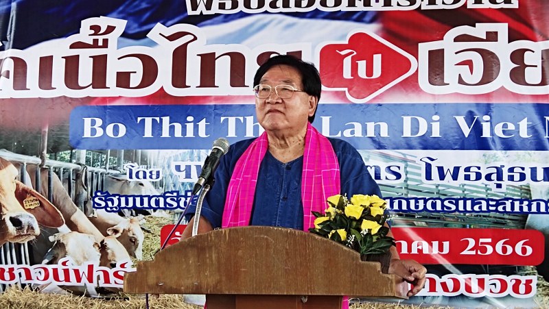 นายประภัตร โพธสุธน รัฐมนตรีช่วยว่าการกระทรวงเกษตรและสหกรณ์ กล่าวว่าประเทศไทย และสาธารณรัฐสังคมนิยมเวียดนาม มีความร่วมมือระหว่างประเทศอย่างดียิ่ง ซึ่งปัจจุบันไทยเป็นคู่ค้ากับเวียดนามในการส่งออกสินค้าหลักที่สำคัญเช่น ชา กาแฟ เครื่องเทศ น้ำมันสำเร็จ รูป และสินค้าทางการเกษตรอีกหลายรายการสำหรับในรายสินค้าโคเนื้อ ภายหลังจากมีการเจรจาการค้าร่วมกันระหว่างผู้เกี่ยวข้องตั้งแต่ช่วงปลายปี 2565 ในวันนี้ถือเป็นครั้งแรกที่จะมีการส่งออกโคเนื้อจากประเทศไทยไปยังสาธารณรัฐสังคมนิยมเวียดนาม ถือเป็นจุดเชื่อมโยงความสัมพันธ์อันดี ผลจากความสำเร็จในวันนี้จะเป็นแรงขับเคลื่อนให้การส่งเสริมอาชีพการเลี้ยงโคเนื้อให้แก่พี่น้องเกษตรกรให้มีรายได้ที่มั่นคง เป็นขวัญและกำลังใจอันดีที่จะทำให้พี่น้องเกษตรกรยึดถือในอาชีพการเลี้ยงโคเนื้อได้อย่างยั่งยืน
