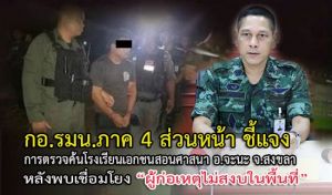 จากกรณีเจ้าหน้าที่ได้เข้าตรวจค้นโรงเรียนเอกชนสอนศาสนาแห่งหนึ่งในพื้นที่ อ.จะนะ จ.สงขลา เมื่อวันที่ 15 กันยายนที่ 2562 ผ่านมา นั้น ล่าสุด พันเอกธนาวีร์ สุวรรณรัตน์ รองโฆษก กองอำนวยการรักษาความมั่นคงภายในภาค 4 ส่วนหน้า เปิดเผยว่า
