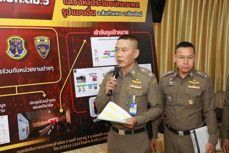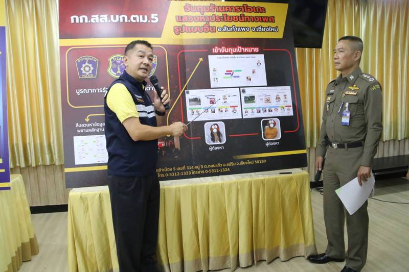 พล.ต.ท.สมพงษ์ฯ กล่าวว่า สืบเนื่องมาจาก เจ้าหน้าที่ กก.สส.บก.ตม.5 ได้รับการประสานจากคณะทำงานปราบปรามการละเมิดเด็กทางอินเทอร์เน็ต (TICAC) ได้รับการร้องเรียน มีสถานประกอบกิจการร้านคาราโอเกะ ที่สุ่มเสี่ยงต่อการกระทำความผิด ในพื้นที่ สภ.สันกำแพง มีเด็กสาวนั่งดริ๊งค์อายุไม่เกิน 18 ปี (ไม่ทราบสัญชาติ) คอยนั่งให้บริการแก่ลูกค้า แต่งตัวยั่วยวนทางเพศ ซึ่งลูกค้าสามารถแตะเนื้อต้องตัวเด็กสาวดังกล่าวได้ (กระทำอนาจาร/กอด จูบ ลูบคลำ) ซึ่งทางร้านเองก็ได้รับประโยชน์ (รายได้/ตัวเงิน) จากการที่เด็กให้บริการนั่งดื่มกับลูกค้า และจากการที่ร้านค้าแสวงหาประโยชน์ทางเพศกับเด็กในรูปแบบดังกล่าว (ค่าดริ๊งค์ เด็กได้ส่วนหนึ่ง ทางร้านได้ส่วนหนึ่ง)