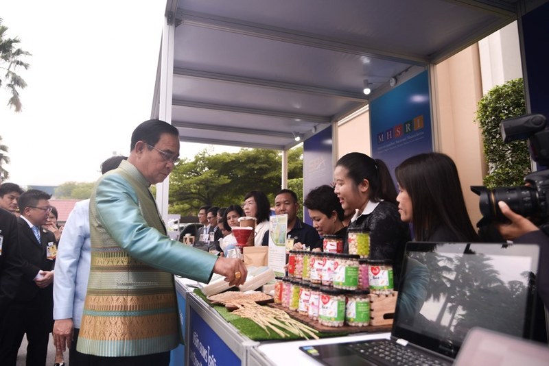 โดยนายกรัฐมนตรี ได้เยี่ยมชมนิทรรศการ อาทิ ถุงพลาสติกย่อยสลายได้จากกากกาแฟ สีย้อมผ้าจากธรรมชาติใบฮ่อม พร้อมให้ข้อเสนอแนะว่า ให้ผู้ประกอบการคำนึงถึงขั้นตอนการผลิต แปรรูป ตามความต้องการของตลาด พร้อมยกระดับสินค้า นำภูมิปัญญาวัฒนธรรมไทยขับเคลื่อนเศรษฐกิจให้สินค้ามีมาตรฐาน