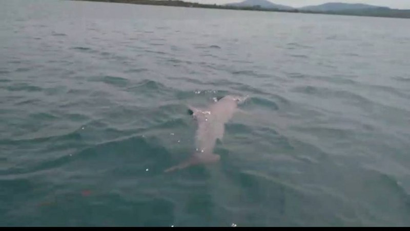 จนท. ศูนย์ปฏิบัติการ อช. ทางทะเลที่ 2 จ. ภูเก็ต. ไปสำรวจหญ้าทะเลพบโลมาหลังโหนก Indo-Pacific humpbacked dolphin; บริเวณกลางร่องน้ำก่อนถึงสะพานสารสิน.
