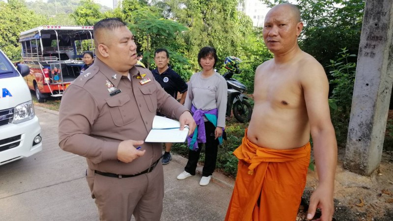 จากการสอบสวนพระรูปหนึ่งเปิดเผยทั้งน้ำตาทราบว่า ขณะที่รถสองแถวไปรับพระเณรของโรงเรียนแห่งหนึ่งในอำเภอศรีราชา ที่บวชบรรพชาพระและสามเณรไปบิณฑบาตในวันแรก ขับขึ้นเขาพระครู ตนเองได้เห็นรถสองแถวคันเกิดเหตุไหลลงมา ส่ายเป็นงู แล้วคนขับน่าจะพยายามให้รถปะทะกับภูเขาเพื่อไม่ให้รถตกเขาอีกฝั่งจนกระแทกและมีพระ เณร กระเด็นออกจากตัวรถ จนรถมาหยุดสงบนิ่งที่เสาไฟฟ้าทำให้มีผู้ได้รับบาดเจ็บดังกล่าว