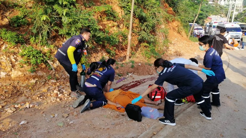 เมื่อเวลาประมาณ 08.00 น. วันนี้ ( 30 ก.ย. ) ศูนย์วิทยุสว่างประทีปธรรมสถานศรีราชา จ.ชลบุรี ได้รับแจ้งเหตุรถสองแถวรับส่งพระและเณรไหลตกจากทางขึ้นเขาได้รับบาดเจ็บเป็นจำนวนมาก เหตุเกิดที่บริเวณทางขึ้นวัดเขาพระครู ตำบลสุรศักดิ์ อำเภอศรีราชา จ.ชลบุรี จึงเดินทางไปตรวจสอบพร้อมประสานรถกู้ชีพโรงพยาบาลต่าง ๆ ในเขตอำเภอศรีราชา เข้าร่วม โดยมี พ.ต.อ.จักรพันธุ์ กิตติสิริพรกุล ผกก.สภ.ศรีราชา และ พ.ต.ท.เกริกศิลป์ บูรเจริญ รอง ผกก.สอบสวน.สภ.ศรีราชาเข้าร่วมตรวจสอบ