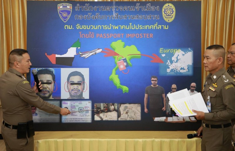 พล.ต.ท.สมพงษ์ฯ กล่าวต่อว่า สืบเนื่องมาจาก เมื่อวันที่ 12 กันยายน 2562 เวลาประมาณ 08.30 น. เจ้าหน้าที่ตำรวจ กก.สส.ปป.บก.ตม.2 ได้จับกุม MR.MJWAZ อายุ35 ปี สัญชาติซีเรีย MISS DIRBAS อายุ 23 ปี สัญชาติปาเลสไตน์ และ MRS.ALKASEM อายุ 53 ปี สัญชาติปาเลสไตน์ โดยกล่าวหาว่า “ใช้หนังสือเดินทางของผู้อื่นโดยมิชอบ ในประการที่น่าจะก่อให้เกิดความเสียหายแก่ผู้อื่นหรือประชาชน” โดยผู้ต้องหาทั้ง 3 คน ให้ข้อมูลต่อเจ้าหน้าที่ชุดจับกุมว่า ได้รับการติดต่อและช่วยเหลือจาก MR.HADI H. สัญชาติสวีเดน และ MR.FADI J. สัญชาติสวีเดน ในการจัดหาหนังสือเดินทางของผู้อื่นซึ่งมีลักษณะใบหน้าคล้ายผู้ต้องหา (PASSPORT IMPOSTER) เพื่อใช้เดินทางมายังประเทศไทยและจะเดินทางต่อไปยังประเทศในแถบยุโรป ซึ่งจากการสืบสวนทราบว่า MR.HADI H. และ MR.FADI J. ได้เดินทางเข้ามาในประเทศไทยโดยแจ้งที่พักอาศัยอยู่ที่โรงแรมแห่งหนึ่งในย่าน ถนนวิสุทธิกษัตริย์ เขตพระนคร กรุงเทพฯ