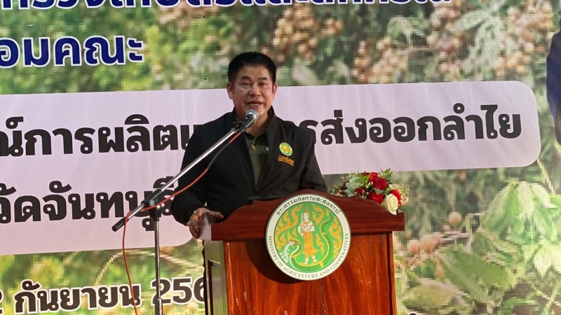 จันทบุรี – รัฐมนตรีว่าการกระทรวงเกษตรและสหกรณ์ เยี่ยมชม กระบวนการผลิตและส่งออกลำไย ที่จังหวัดจันทบุรี พร้อมเป็นประธานมอบเอกสารสิทธิ์ ที่ดินทำกัน สปก. 4 – 01 / ใบรับรอง GAP และมอบนโยบาย พบปะพูดคุยกับเกษตรกร และหน่วยงานภาครัฐที่เกี่ยวข้อง