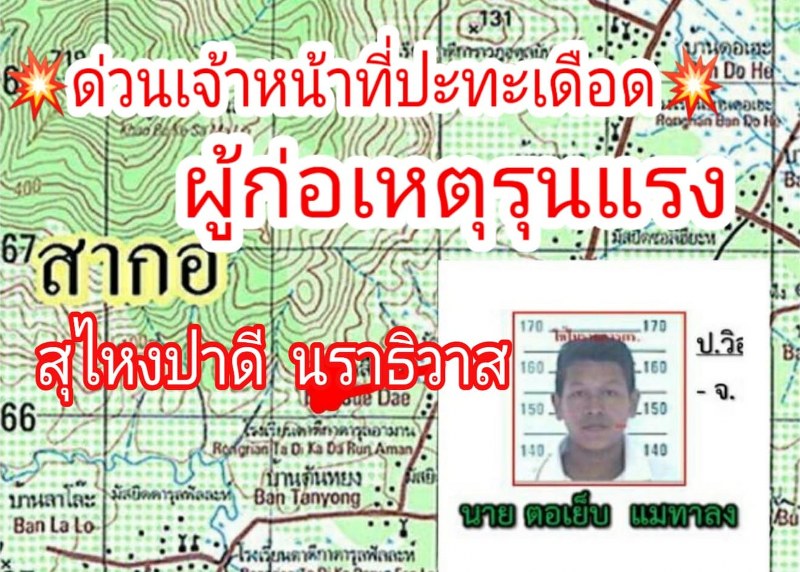 วันนี้ (1 ต.ค.) พ.อ.สฐิรพงษ์ อาจหาญ ผบ.ชุดเฉพาะกิจกรมทหารพรานที่ 48 อ.เจาะไอร้อง จ.นราธิวาส ได้สั่งการให้เจ้าหน้าที่ทหารชุดจรยุทธ์ ร้อย ทพ.4809 จำนวน 1 ชุดปฏิบัติการ นำกำลังขึ้นพิสูจน์ทราบความเคลื่อนไหวของกองกำลังติดอาวุธกลุ่ม นายตอเย็บ แมทารง ซึ่งมีหมายจับ ป.วิอาญา คดีความมั่นคงและพวก ที่เคลื่อนไหวบนเทือกเขาหลังหมู่บ้านสือแด หมู่ 7 ต.สากอ อ.สุไหงปาดี จ.นราธิวาส