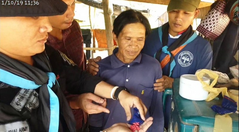 จึงได้นำกำลังทหารพราน เข้าปิดล้อมตรวจค้นบ้านเป้าหมายขณะเดียวกันได้มีชายกำลังขับรถจักรยานยนต์ออกจากบ้าน เจ้าหน้าที่จึงแสดงตัวตรวจสอบชายดังกล่าวทราบชื่อคือนาย จินดา โคตรรสขึง อายุ 54 ปีเป็นเจ้าของบ้านตรวจค้นตามตัวพบกระเป๋าผ้าคาดเอวด้านในกระเป๋ามีกระปุกครีมพลาสติกด้านในพบยาบ้าจำนวนหนึ่ง เจ้าหน้าที่จึงนำตัวผู้ต้องหาเข้าไปตรวจค้นภายในบ้าน