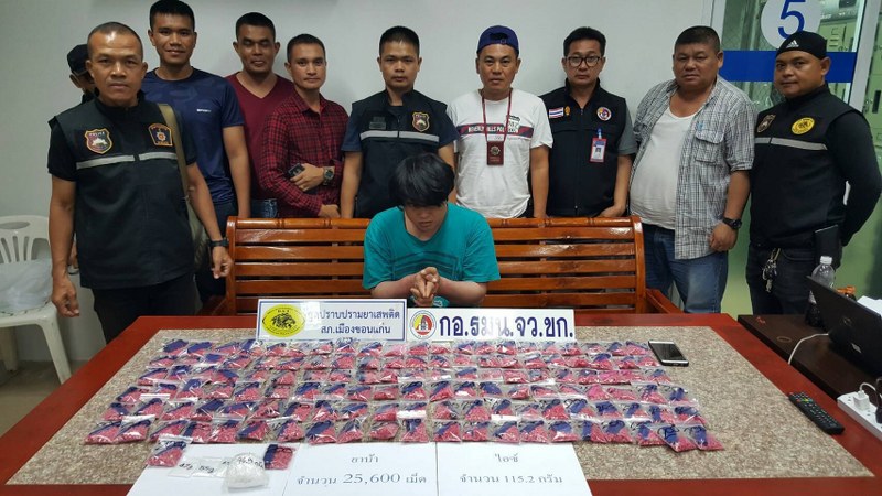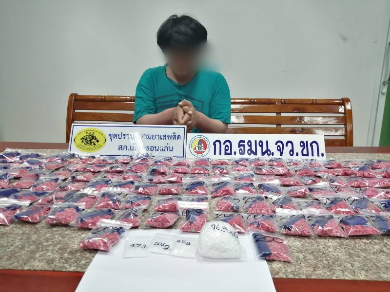 จึงได้แสดงตนเป็นเจ้าหน้าที่ตำรวจเพื่อทำการตรวจค้น ผลการตรวจค้นพบ ไอซ์ จำนวน 4 ถุง น้ำหนักรวม 115.2 กรัม พร้อมยาบ้ารวมจำนวน 25,600 เม็ดมซุกซ่อนอยู่ภายในบริเวณบ้านดังกล่าว ให้การรับสารภาพตลอดข้อกล่าวหาโดยรับว่า ยาบ้าดังกล่าวได้มาจากชาวลาวชื่อ ท้าวแสง ไม่ทราบชื่อนามสกุลจริง จึงได้ควบคุมตัวพร้อมด้วยของกลาง นำส่งพนักงานสอบสวน สภ.เมืองขอนแก่น เพื่อดำเนินคดีตามกฎหมาย พร้อมยึดทรัพย์มูลค่า 80,000 บาท
