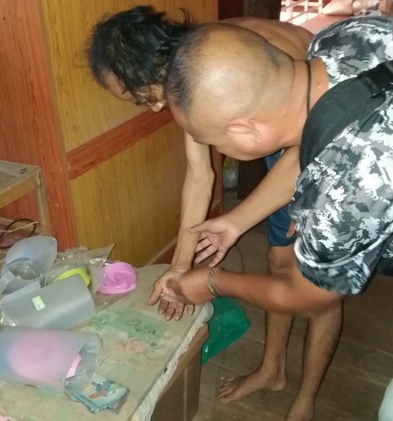จุดที่ 2 บริเวณข้างตู้เก็บของติดกับที่นอนของนายสาธิตฯ พบวัตถุถูกพันด้วยเทปกาวสีดำจำนวน 2 ห่อ แบ่งเป็นห่อที่มีขวดพลาสติกฝาสีขาว เมื่อเปิดออกดูพบยาบ้าสีส้มแดง บรรจุในหลอดพลาสติกสีฟ้าคาดขาว ลักษณะลนปิดหัวท้ายด้วยความร้อน จำนวน 21 หลอด หลอดละ 10 เม็ด รวมยาบ้า 210 เม็ด, ห่อพลาสติกสีน้ำตาลเมื่อแกะออกดูพบยาบ้าสีเขียวจำนวน 3 เม็ดบรรจุในหลอดพลาสติกสีฟ้าขาวลักษณะลนปิดหัวท้ายด้วยความร้อน จำนวน 1 หลอด และกล่องพลาสติกฝาสีเขียวห่อด้วยถุงพลาสติก มัดด้วยยางวง เมื่อแกะออกพบถุงพลาสติกใส จึงแกะออกดูพบถุงพลาสติกสีน้ำเงินชนิดกดรูดปิดจำนวน 2 ถุง เมื่อเปิดออกดูพบยาบ้าจำนวน 203 เม็ดแบ่งเป็นสีส้มแดง จำนวน 198 เม็ด สีเขียวจำนวน 5 เม็ด จึงได้ตรวจจดไว้เป็นของกลาง