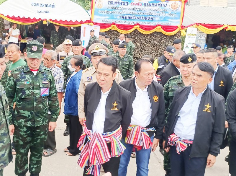 วันนี้ (28 ต.ค.66) นาย สุทิน คลังแสง รัฐมนตรีว่าการกระทรวงกลาโหมและคณะ พร้อมด้วย พล.อ.เจริญชัย หินเธาว์ ผู้บัญชาการทหารบก/รอง ผอ.รมน. พล.อ.อุกฤษฎ์ บุญตานนท์ ผู้ช่วยผู้บัญชาการทหารบก พล.ท.จิรวัฒน์ พันธ์สวัสดิ์ ผอ.ศปป.4 กอ.รมน. และ นายสมมาตร มณีหยัน รองอธิบดีกรมธนารักษ์ เดินทางลงพื้นที่ อ.หนองวัวซอ จ.อุดรธานี เพื่อตรวจเยี่ยมความคืบหน้าการดำเนินการจัดสรรที่ดินให้ประชาชนใช้ประโยชน์ พร้อมพบปะประชาชนในพื้นที่ โครงการหนองวัวซอโมเดลถือเป็นพื้นที่นำร่องที่กองทัพบกส่งมอบให้กรมธนารักษ์ไปดำเนินการตามนโยบายรัฐบาลเรียบร้อยแล้ว โดยกรมธนารักษ์อยู่ระหว่างดำเนินการจัดสรรพื้นที่ สอบสวนสิทธิการครอบครอง และการรับคำร้องขอเช่าที่ราชพัสดุ เพื่อให้ประชาชนสามารถใช้ประโยชน์จากที่ดินในการอยู่อาศัย การประกอบอาชีพอย่างได้ถูกต้องตามกฎหมาย
