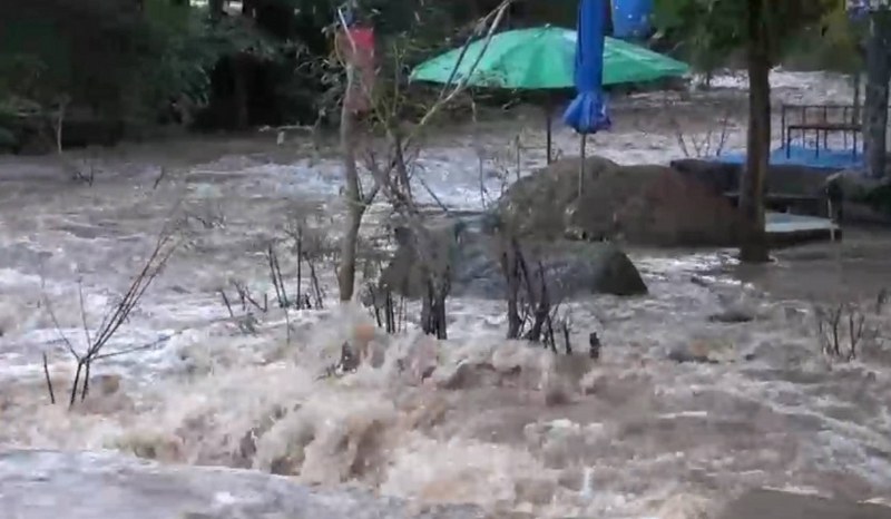 ที่นครนายก เมื่อเวลา16.30 น. เกิดน้ำหลากในบริเวณน้ำตกนางรอง ตำบลหินตั้ง อำเภอเมือง นครนายก โดยน้ำมีสีแดงขุ่นและไหลเชี่ยว จนท่วมสะพานข้ามลำธารที่เล่นน้ำเอกชน โชคดีที่วันนี้ไม่ใช่เป็นวันหยุดเลยไม่มีนักท่องเที่ยวมาลงเล่นน้ำ จากการสอบถามเจ้าหน้าที่บอกว่า ระดับน้ำและสีน้ำเริ่มเปลี่ยนสีและมีการไหลเชี่ยวตั้งแต่เวลา15.30 น. และเพิ่มระดับขึ้นเรื่อยๆ จนต้องนำธงแดงไปปักเอาไว้ตรงบันไดทางลงเล่นน้ำของน้ำตก