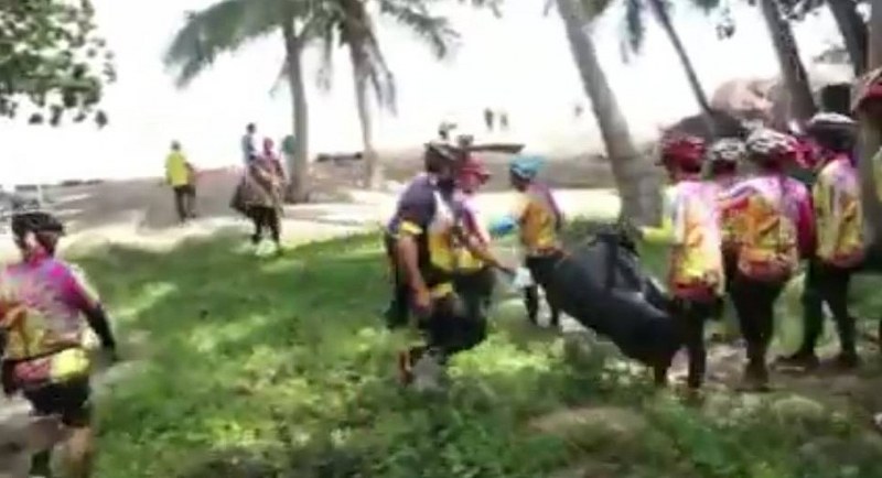 จากนั้น ขบวนจักรยานได้เดินทางต่อไปยังชายหาดมะรวด หมู่ที่ 1 ตำบลบ้านกลาง หยุดพักและรับฟังบรรยายสรุปจากนายกองค์การบริหารส่วนตำบลบ้านกลาง และปั่นชมบริเวณชายหาดบางมะรวด ซึ่งกำลังปรับปรุงเป็นแหล่งท่องเที่ยวแห่งใหม่ของอำเภอปะนาเระ ก่อนที่จะเดินทางต่อไปที่หาดแฆแฆ และเวลา 10.20 น. ขวนจักรยานได้เดินทางถึงหาดแฆแฆ ซึ่งตั้งอยู่ หมู่ที่ 4 ตำบลบ้านน้ำบ่อ