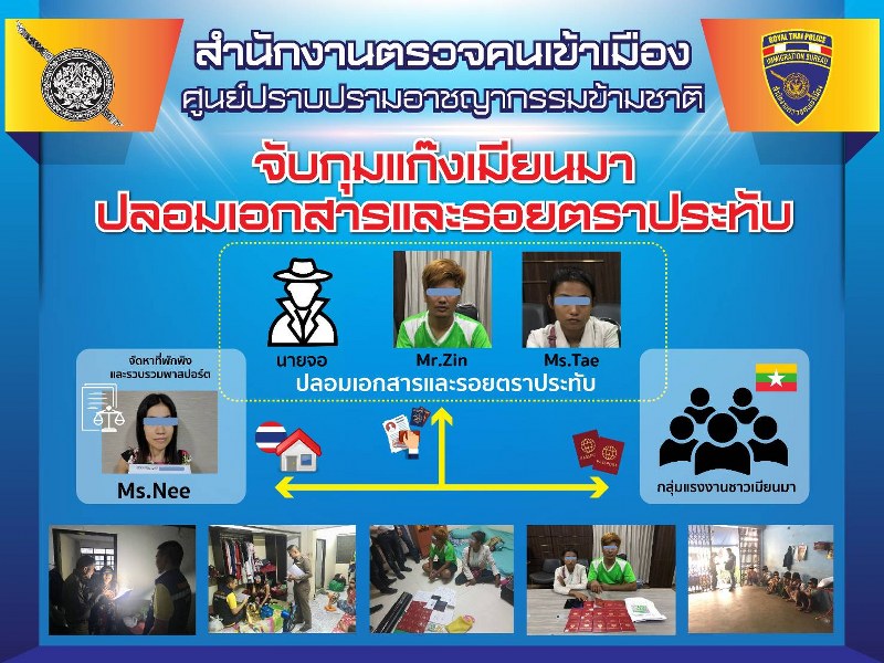 สืบสวน สตม.รวบเครือข่ายปลอมหนังสือเดินทาง และตราประทับปลอมแรงงานต่างด้าวเมียนมา