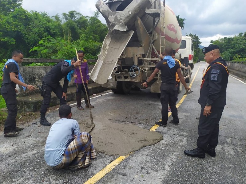 โดย ชุดปฎิบัติการกิจการพลเรือน กองร้อยทหารพราน ที่ 4912 พร้อม ประชาชน ช่วยกันปรับปรุงซ่อมแซมถนนชำรุดที่เกิดจากภัยธรรมชาติ เพื่ออำนวยความสะดวกการสรจรของประชาชนและเพื่อป้องกันการก่อเหตุ บริเวณ บ.ดาฮง ม.4 ต.เชิงคีรีฯ กับ บ.บีโล๊ะ ต.ซากอ อ.ศรีสาคร จ.นราธิวาส