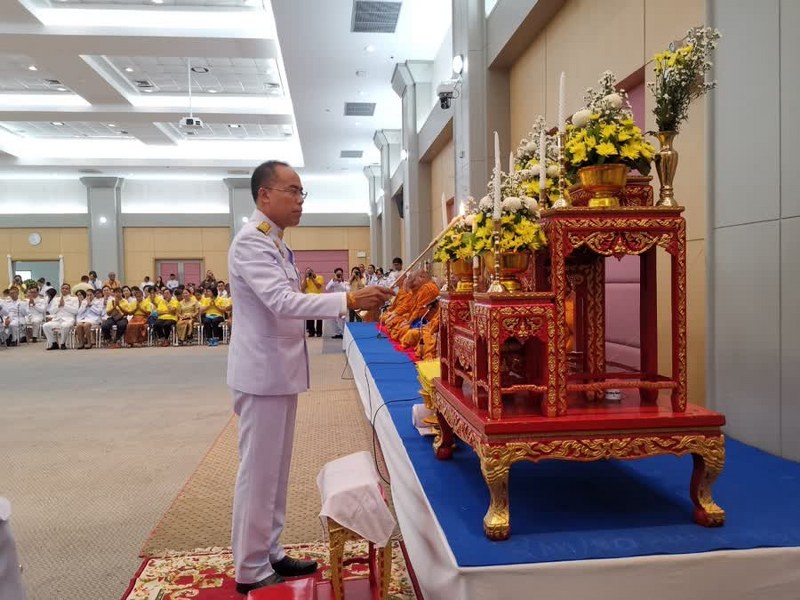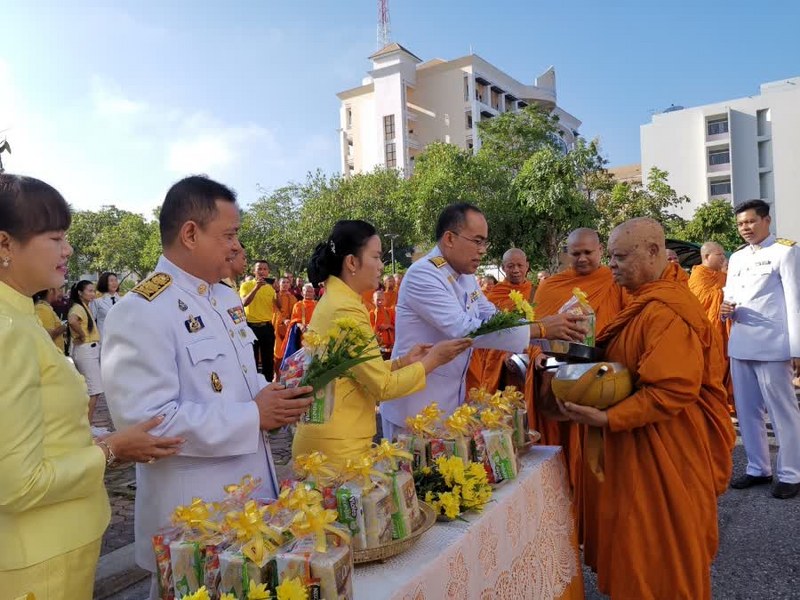 วันนี้ (13 ตุลาคม 2562) ที่หอประชุมมหาวิทยาลัยราชภัฏยะลา นายวรเชษฐ พรมโอภาษ รองผู้ว่าราชการจังหวัดยะลา รักษาราชการแทนผู้ว่าราชการจังหวัดยะลา พร้อมด้วยหัวหน้าส่วนราชการ อัยการ ศาล ทหาร ตำรวจ และประชาชนชาวจังหวัดยะลาทุกหมู่เหล่า ร่วมทำบุญตักบาตรแด่พระสงฆ์ จำนวน 89 รูป เพื่อถวายเป็นพระราชกุศล