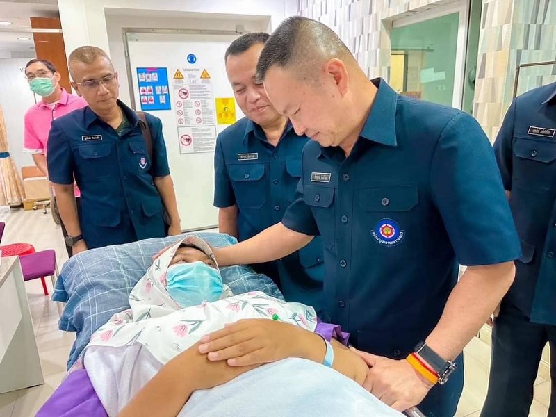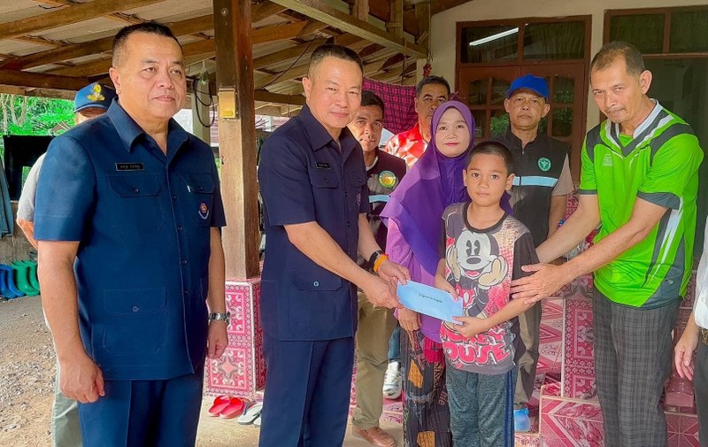 จากนั้น ได้ร่วมกับผู้ว่าราชการจังหวัดสตูล นายกเหล่ากาชาด และส่วนราชการจังหวัดสตูล เดินทางเข้าเยี่ยมให้กำลังใจน้องๆ ที่พักรักษาตัวที่บ้าน ณ อำเภอควนโดน จังหวัดสตูล จำนวน 30 ราย โดยผู้บัญชาการหน่วยบัญชาการทหารพัฒนา ได้แสดงความเสียใจกับน้องๆ พร้อมทั้งได้ทำความเข้าใจกับผู้ปกครอง ซึ่งทุกคนต่างมีความเข้าใจในเหตุการณ์ดังกล่าว โอกาสนี้ ได้มอบเงินเยียวยาและมอบถุงยังชีพให้แก่ครอบครัว สำหรับน้องๆ อีกจำนวน 12 ราย ได้มอบหมายให้ผู้อำนวยการสำนักงานพัฒนาภาค 4 หน่วยบัญชาการทหารพัฒนา เข้าทำการเยี่ยมเยียน พูดคุยให้กำลังใจและมอบเงินเยียวยา ในวันนี้