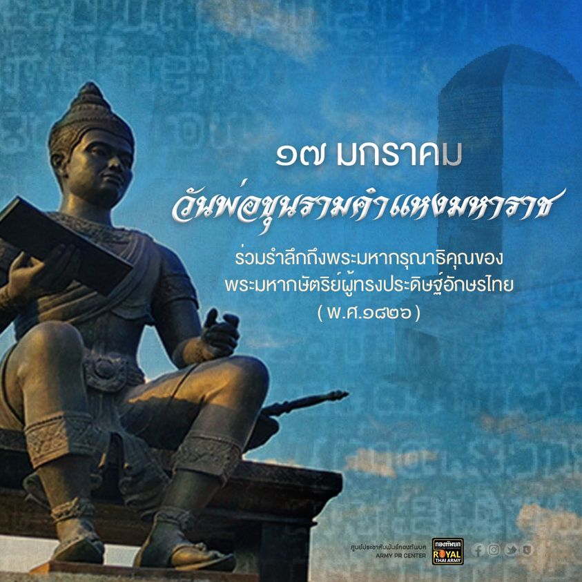 วันพ่อขุนรามคำแหงมหาราช ตรงกับวันที่ 17 มกราคมของทุกปี ร่วมรำลึกถึงพระมหากรุณาธิคุณของพระมหากษัตริย์ผู้ทรงประดิษฐ์อักษรไทย (พ.ศ.1826)
