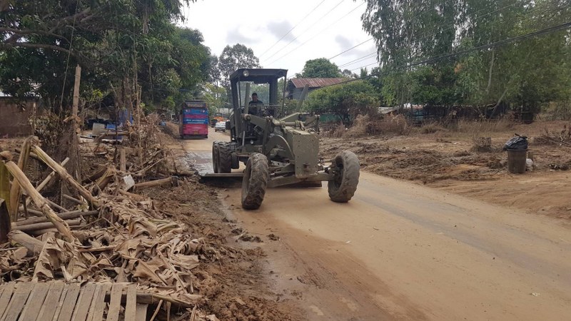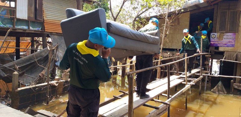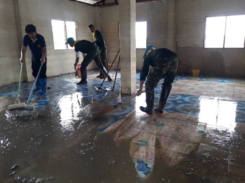 รวมทั้งสนับสนุนการยังชีพของประชาชนในพื้นที่ ส่วนอีก 28 จังหวัดที่สถานการณ์คลี่คลายแล้ว กองทัพได้กระจายกำลังทหารลงพื้นที่ สนับสนุนช่วยเหลือผู้ประสบภัย ทยอยขนย้ายสิ่งของกลับเข้าสู่ที่พักอาศัยและช่วยทำความสะอาดฟื้นฟูสภาพบ้านเรือนและแหล่งชุมชน พร้อมจัดชุดช่างขนาดเล็กและขนาดกลาง ให้การช่วยเหลือซ่อมแซมบ้านเรือนที่ได้รับความเสียหายบางส่วนหรือเสียหายทั้งหลัง ควบคู่ไปกับจัดชุดช่างเครื่องมือพิเศษ จากกองร้อยทหารช่างและหน่วยทหารพัฒนา เตรียมให้การสนับสนุนซ่อมแซมสาธารณูปโภค เช่น ถนน สะพาน รวมทั้งตลิ่งที่พังเสียหาย เพื่อให้ประชาชนในพื้นที่สามารถกลับมาใช้ชีวิตปกติได้โดยเร็ว