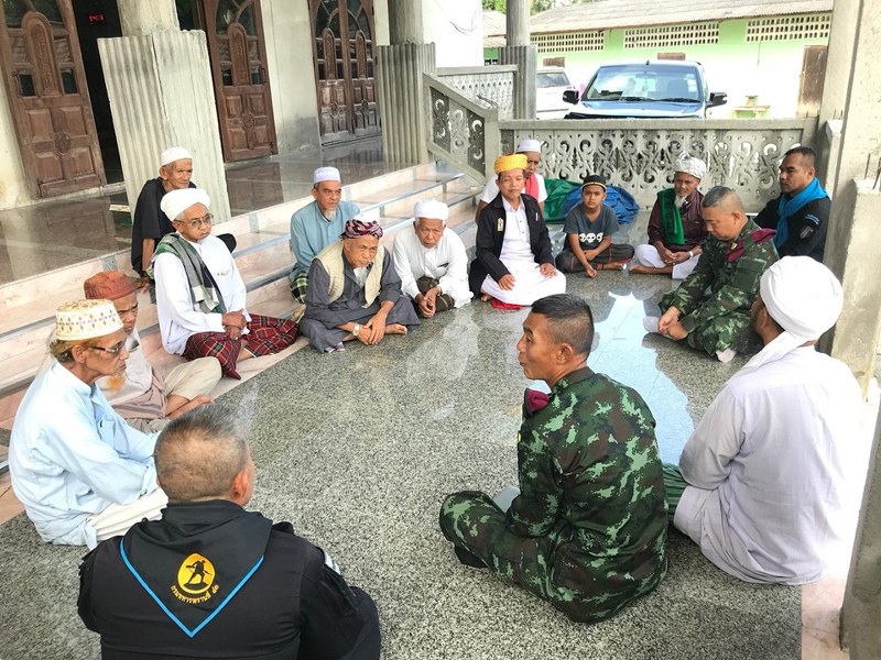 ชุดสถานีวิทยุทักษิณสัมพันธ์ 304 พร้อมกับ ร้อย.ทหารพราน 4102 และนายอับดุลรอยะ มะดาแฮ ผู้แทนโฆษกชาวบ้านรุ่นที่ 10 ร่วมพบปะกลุ่มดาอี ที่ออกดะวะห์ประจำมัสยิดฯ ตามภารกิจงานเผยแผ่ศาสนาตามแบบฉบับศาสดามุฮัมมัดฯ เพื่อประชาสัมพันธ์และทำความเข้าใจเกี่ยวกับความจำเป็นในการลงทะเบียนซิม 2 แชะ ระบบยืนยันตัวตน