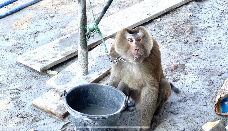 ระทึก.. เร่งช่วยชีวิตลิงกังเก็บมะพร้าว หลังเชือกพันอยู่บนยอดมะพร้าว นานกว่า 5 วัน