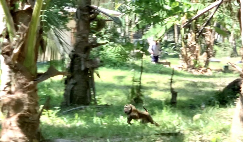 ชาวบ้านจึงนำข้าว อาหาร ผลไม้ ที่ลิงกังชอบมาให้ใต้โคนต้นมะพร้าว รอประมาณ 30 นาที ลิงกังตัวดังกล่าวได้ไต่ลงมาจากต้นมะพร้าว เพื่อมากินข้าวที่หิวโหยมาหลายวัน เมื่อจะเข้าไปจับลิงกังดังกล่าวตกใจวิ่งหนี ทำให้คนที่อยู่รอบๆ และสุนัขที่มีอยู่ประมาณ 4-5 ตัว ออกแรงช่วยกันไล่ควบจับ แต่ลิงกังตัวดังกล่าวได้วิ่งหนีเข้าป่าสูญหาย โดยค้นหากันอยู่ประมาณ 1 ชม.แต่ไม่พบ