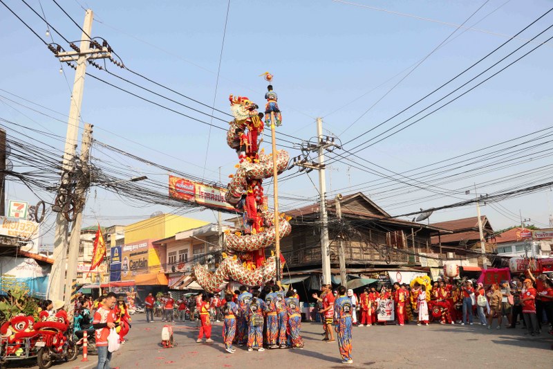 ที่ศาลาประชาคมเจ้าพ่อท่าช้าง อำเภอเดิมบางนางบวช จังหวัดสุพรรณบุรี นายยุทธตนัย แจ่มศรี ประธานคณะกรรมการศาลเจ้าพ่อหลักเมืองท่าช้าง เป็นประธานเปิดงานประเพณีทศกาลงานงิ้วศาลเจ้าพ่อหลักเมืองท่าช้าง ประจำปี 2567 มีคณะกรรมการ พี่น้องประชาชนคนไทยเชื้อสายจีน คณะครูอาจารย์ ข้าราชการ ชมรมผู้สูงอายุ หนูน้อยชั้นอนุบาล และนักเรียนชั้นประถม และมัธยม แต่งกายด้วยชุดกี่เพ้า และอาหมวย อาตี๋ สีแดงสดใสสวยงามเข้าร่วมขบวนแห่ออกจากศาลาประชาคมเจ้าพ่อท่าช้าง ไปรอบตลาดท่าช้าง ในขบวนมีขบวนสิงโต และมังกร ร่วมขบวนแห่ และการแสดงการเชิดสิงโต การแสดงการต่อตัวของหนูน้อย การแสดงมังกร พ่นไห มังกรพ่นน้ำ มังกรปีนเสา ในบรรยากาศที่อากาศร้อนอบอ้าว