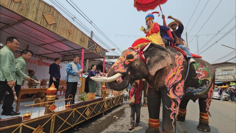 “ประเพณีแห่ช้างบวชนาค” สืบสานตำนานชาวไทยพวน บ้านหาดเสี้ยว