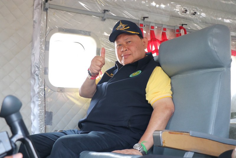 จากนั้น ได้เดินทางไปยังจุดจอดอากาศยานกรมฝนหลวงและการบินเกษตร กองบิน 41 เพื่อขึ้นบินตรวจการปฏิบัติการฝนหลวง ให้ทราบถึงขั้นตอนการทำงาน ปัญหาอุปสรรค และสร้างความมั่นใจให้ประชาชนและนักท่องเที่ยวที่เดินทางมาเที่ยวในจังหวัดเชียงใหม่ในช่วงสงกรานต์นี้ว่าปัญหาฝุ่นควันจะเบาบางลง