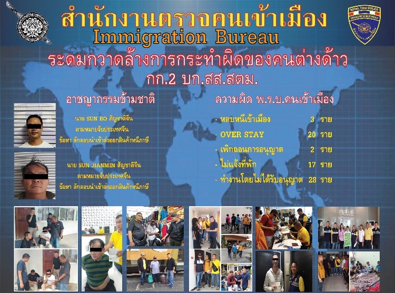 รายที่ 1 : รวบจีนหนีคดีลักลอบนำเข้าส่งออกสินค้าหนีภาษีศุลกากร เมื่อวันที่ 16 พฤษภาคม 2562 กก.2 บก.สส.สตม. จับกุม นายซุน เจียนหมิน (MR.SUN JAINMIN) อายุ 59 ปี สัญชาติจีน ซึ่งทางการสาธารณรัฐประชาชนจีนได้ออกหมายจับในความผิดฐานลักลอบนำเข้าส่งออกสินค้าโดยไม่สำแดงภาษีศุลกากร โดย จนท.สืบสวน กก.2 บก.สส.สตม. ได้สืบสวนจนพบและควบคุมตัวได้ที่อพาร์ทเม้นท์แห่งหนึ่ง ใน อ.ศรีราชา จ.ชลบุรี