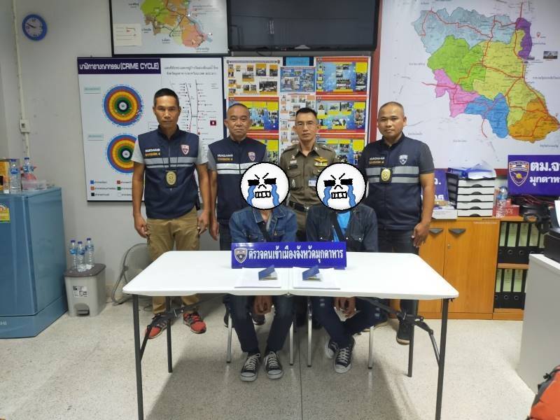 ข้อหา “เป็นคนต่างด้าวอยู่ในราชอาณาจักรโดยการอนุญาตสิ้นสุด” สถานที่จับกุม บริเวณสถานีขนส่งผู้โดยสาร จังหวัดมุกดาหาร ต.มุกดาหาร อ.เมือง จ.มุกดาหาร
