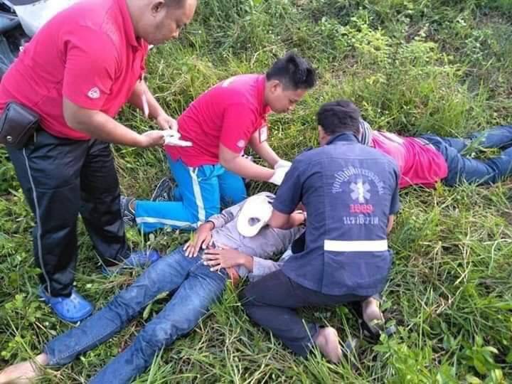 ออกตรวจสอบพบผู้บาดเจ็บ 1 ราย ชื่อวีระวัฒน์ สุวรรณศรี ที่อยู่ 12/2 ม.1 ต.ศาลาใหม่ อ.ตากใบ จ.นราธิวาส ตรวจสอบตามร่างกายมีแผลถลอกเล็กน้อยและปวดต้นคอ อาสาฯ ได้ใส่ Collar ปฐมพยาบาลเบื้องต้น ตรวจสอบร่างกายไม่มีรอยแตกหักของกระดูก จากนั้นเคลื่อนย้ายผู้บาดเจ็บขึ้นรถ กู้ชีพ อบต.ไพรวัน นำส่ง รพ.ตากใบ เรียบร้อย.