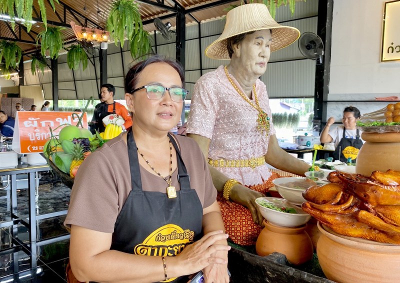 นครนายก – ก๋วยเตี๋ยวเรือสุดแปลก นำหุ่นคุณยายนั่งในเรือ ช่วยเรียกลูกค้าขายดิบขายดี
